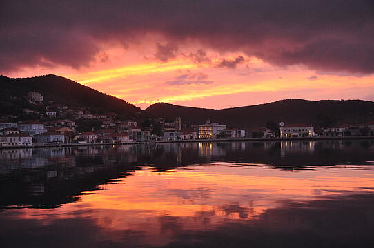 Ein besonderes Highlight unseres Törns ist eine kleine Insel voller Mythen, die angebliche Heimat des verwegenen Seefahrers und Helden von Troja, Odysseus: Ithaka. Der fjordartige Hafen Vathi zählt zu den schönsten Griechenlands. Wir ankern mitten in dieser idyllischen, geschützten Naturbucht und genießen den Blick auf die von Oliven- und Zitronenbäumen und Weinfeldern umgebene hübsche Inselhauptstadt. Aus der spiegelglatten Wasseroberfläche der Bucht erhebt sich eine kleine Insel mit Kirche, zu der sowohl Lord Byron als auch Heinrich Schliemann regelmäßig morgens genüsslich hinüber geschwommen sind.