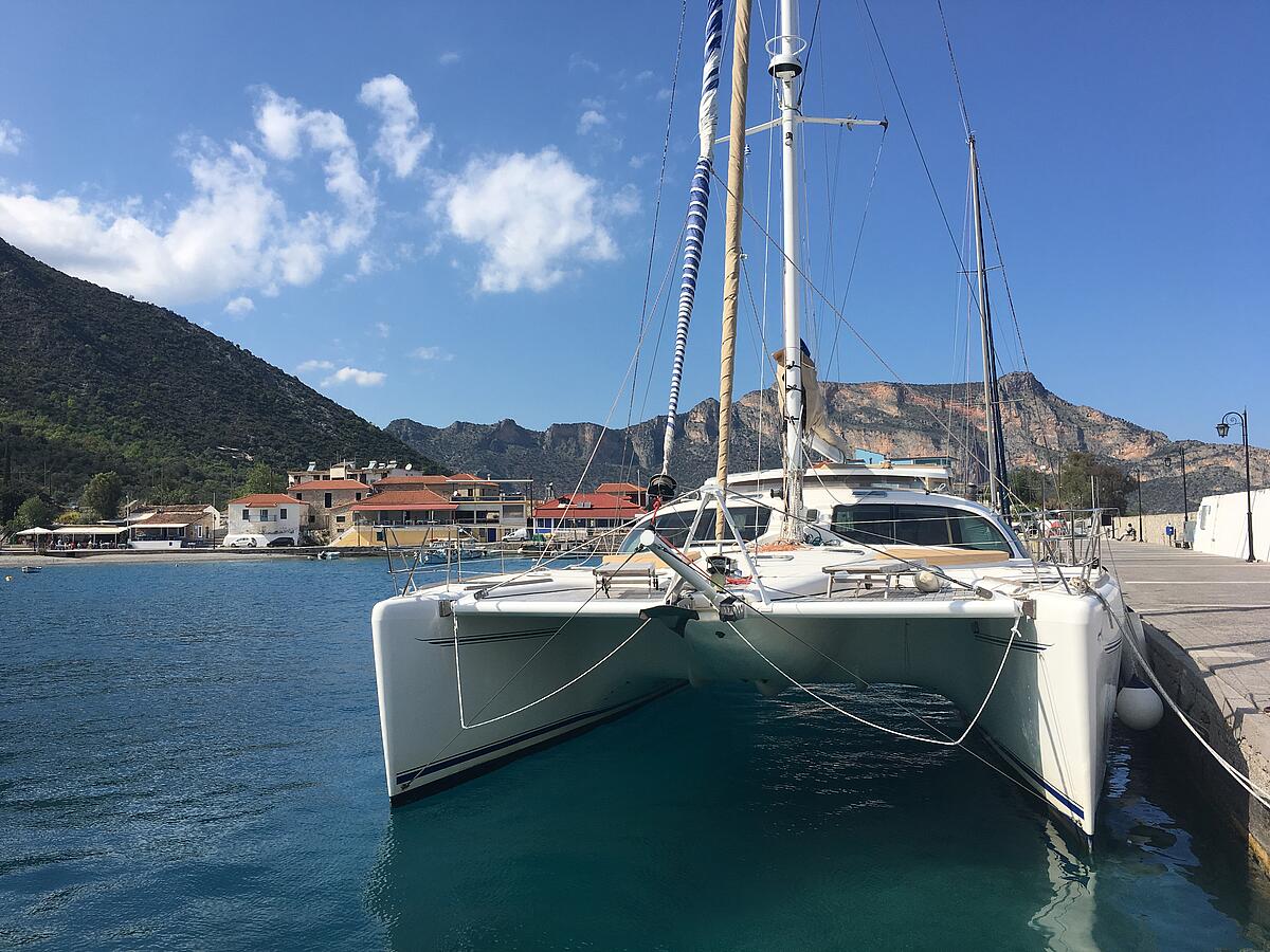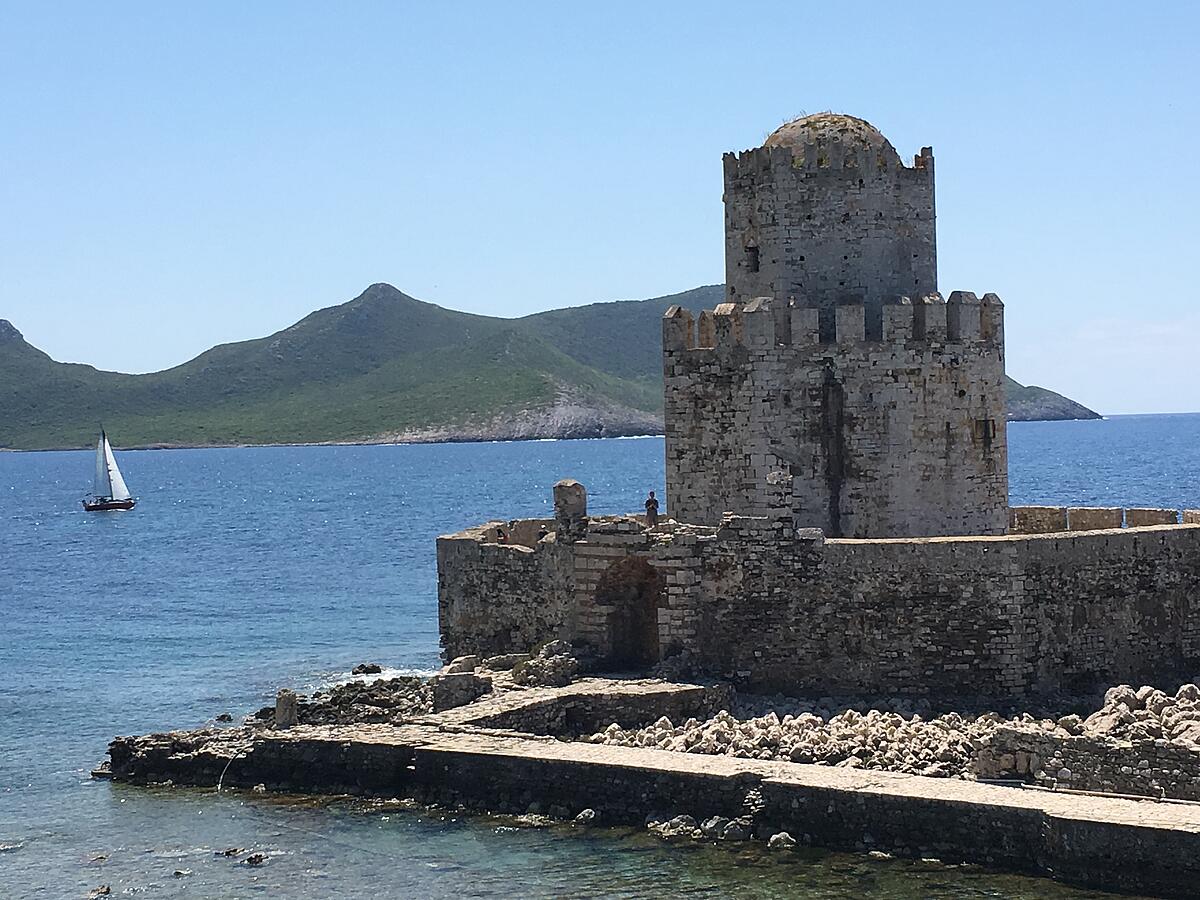 Methoni, der südlichste Ort des westlichsten Fingers ist der Absprunghafen ins 310 Meilen entfernte Sizilien, wo wir in Taormina ankommen wollen. Das einigermaßen richtige Wetterfenster kommt und in gut 50 Std. geht es bei wechselnden Winden zügig hinüber. Zwischendurch müssen wir auch mal ins zweite Reff und eine aufgewühlte See hinterlässt dicke Salzkrusten am Vorschiff. Da freut sich der Skipper, als es kurz vor Taormina gewittert und aus vollen Kübeln Süßwasser schüttet, alles glänzt wieder pünktlich zur Ankunft im adligen Taormina. Die Stadt ist ein Hingucker, trotz aller Touristen.